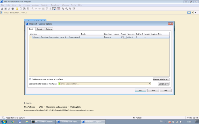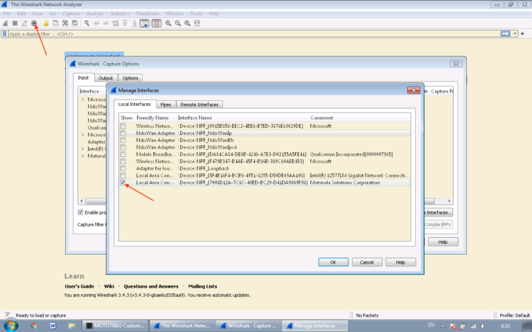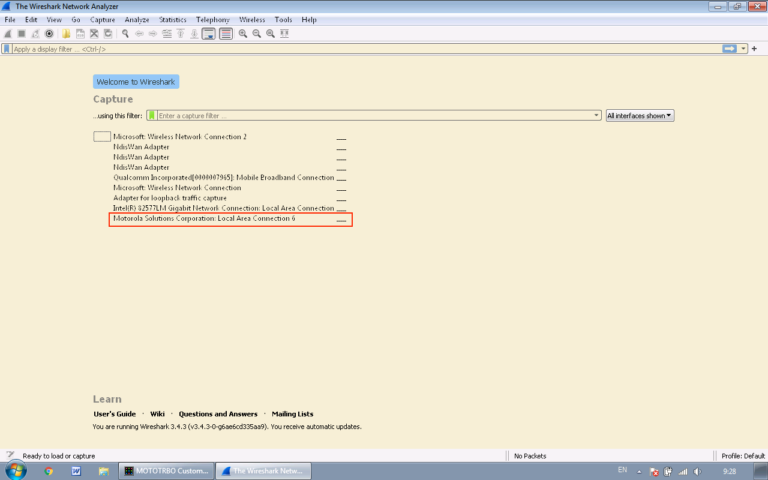 Hadi başlayalım. Öncelikle WireShark’ı kurup başlatmamız gerekiyor. Not: Motorola CPS çalışıyor olmalıdır.