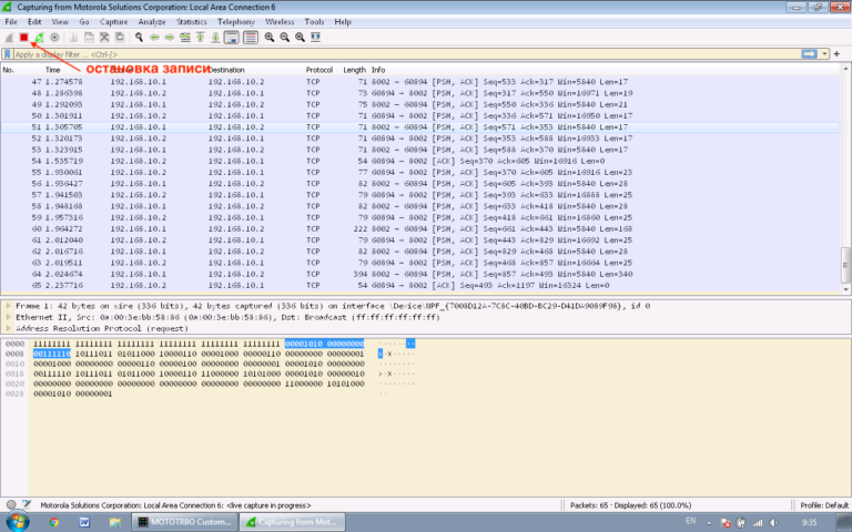 Başlat düğmesine (WireShark) ve ardından Motorola CPS uygulamasında “İstasyon Oku” düğmesine tıklayın. İstasyon sorgulanıp parola istemi görüntülendiğinde, paket kayıt işlemini durdurabilirsiniz.