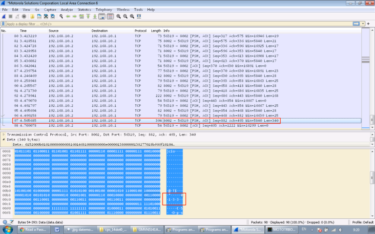 Motorola CPS uygulaması, istasyonla iletişim kurmak için sanal bir ağ arayüzü kullanır. WireShark kullanarak bu verileri analiz edebilir ve parolamızı arayabiliriz.