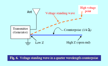 Karşı ağırlık aslında yapay bir topraklamadır. Çeyrek dalga boyunun bir ucu sistemin devre toprağına (RF üreteci veya vericisi) bağlanır ve diğer ucu serbest bırakılır. RF üreteci aktif olduğunda, bu telde sinyalin bir görüntüsü oluşturulur ve bir gerilim sabit dalgası indüklenir. Bu gerilimin büyüklüğü, uzunluğu boyunca çeşitli noktalarda ¼ dalga boyu bir antene benzer. Bu telin açık ucu yüksek empedanslıdır (anten teorisine bakın) ve jeneratörün devre toprağına bağlı karşı uç sıfırdır. Bundan, jeneratör tarafındaki gerilimin sıfır (devre toprağı) ve açık ucun yüksek gerilim olduğu sonucu çıkar.