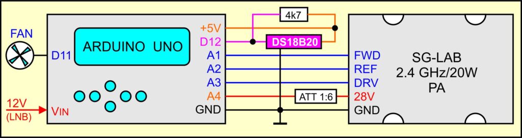 PA monitörünün ölçümleri, veri işleme ve görüntüleme işlemleri, LCD tuş takımına sahip bir Arduino Uno ile gerçekleştirilir. Şekil 4, PA’ya ve Dallas DS18B20 sıcaklık sensörüne giden kabloları göstermektedir.