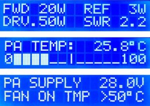 FWD veya REF kuplörlerinin ölçülen değerleri, çizimde tanımlanan kalibrasyon eğrilerinin minimum değerlerinin altındaysa, bu durum ekranda gösterilir. Bu durumda, SWR belirlenemez. Bu durumda, SWR yerine PA sıcaklığı görüntülenir.